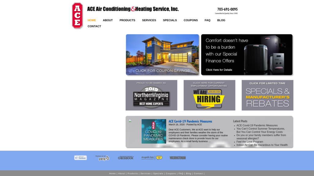 ACE Air Conditioning and Heating Service provides residential heating and cooling services. ACE services all brands of equipment and installs furnaces, air conditioners, heat pumps, air handlers, humidifiers, UV lights and air cleaners.