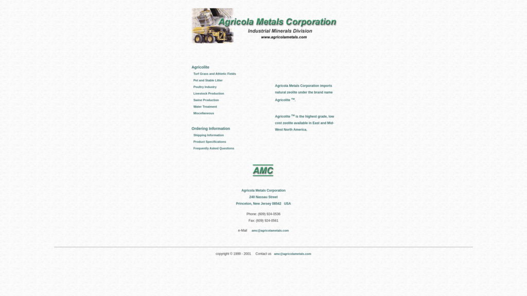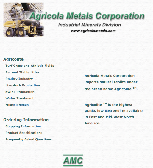 Agricola Metals Corporation imports natural zeolite under the brand name Agricolite TM.