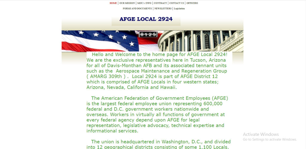 Hello and Welcome to the home page for AFGE Local 2924! We are the exclusive representatives here in Tucson, Arizona for all of Davis-Monthan AFB and its associated tennant units such as the Aerospace Maintenance and Regeneration Group
