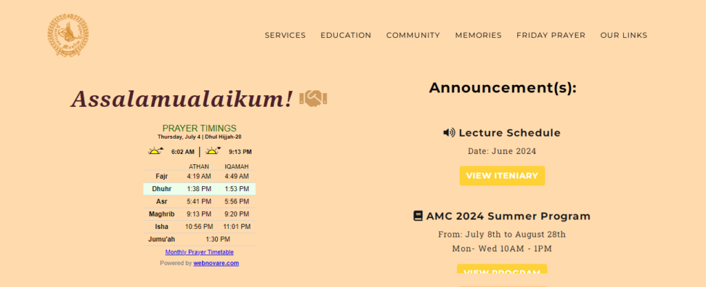 AMC offers Islamic and legal marriage applications. Required documentations are needed: valid government issued I.D such as a driver’s license, passport, county’s original marriage license or greencard.