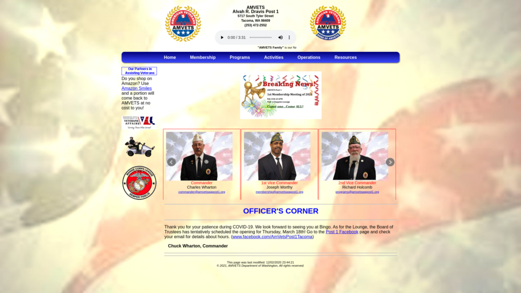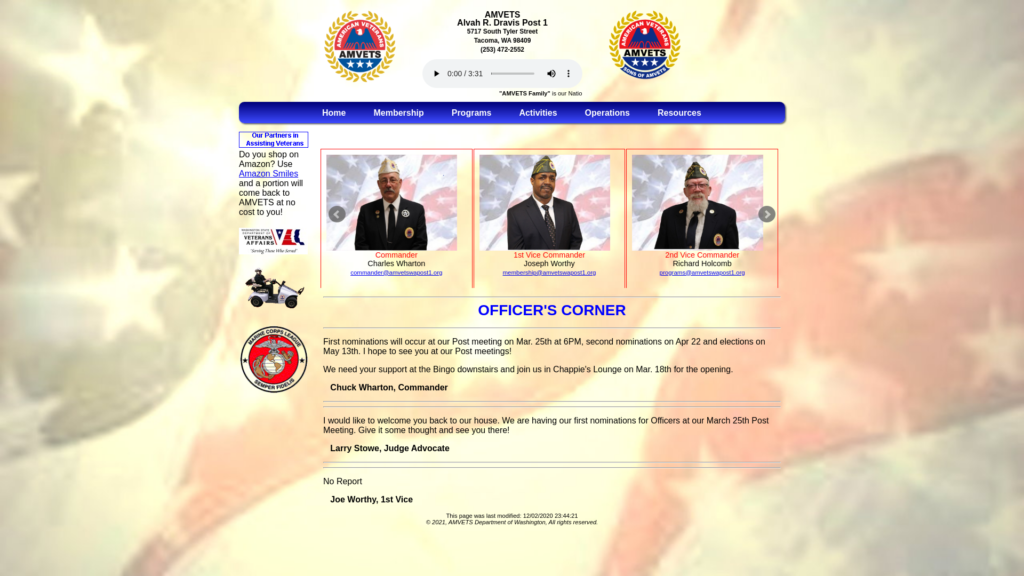 AMVETS, Tacoma, Washington, VA benefits, VA assistance, VA help, Veterans, Support the troops, VSO, Service Office, Washington State, VLC, VAAC, community service, patriotic, patriotism, survivors benefits, armed forces, widows, social welfare, needy veterans, disabled veterans, hospitalized veterans, armed forces, charity, BINGO, veterans legislation, americanism, hall rentals, parties, weddings, nonprofit, charity, Alvah R. Dravis, Alvah Dravis