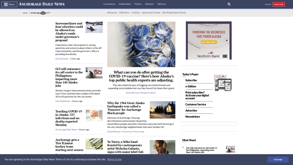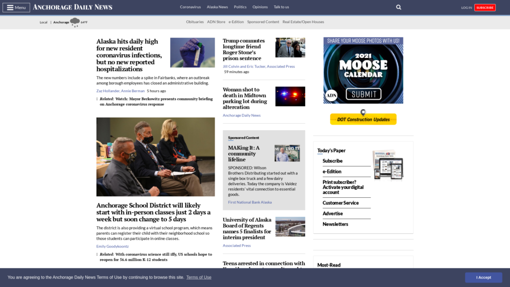 Based in Anchorage, Anchorage Daily News offers news, features and commentary with a statewide focus.