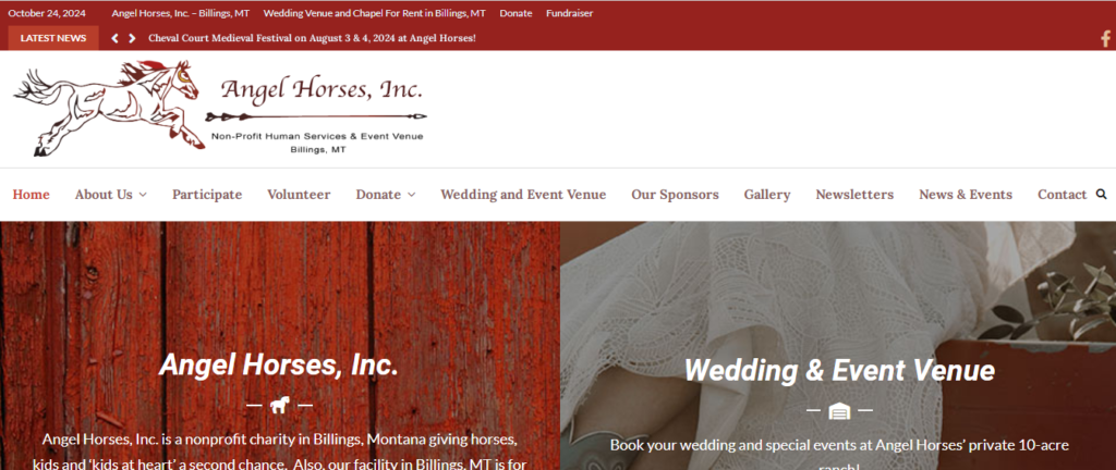 Angel Horses, Inc. is a nonprofit charity in Billings, Montana giving horses, kids and ‘kids at heart’ a second chance. Also, our facility in Billings, MT is for rent for weddings and events!