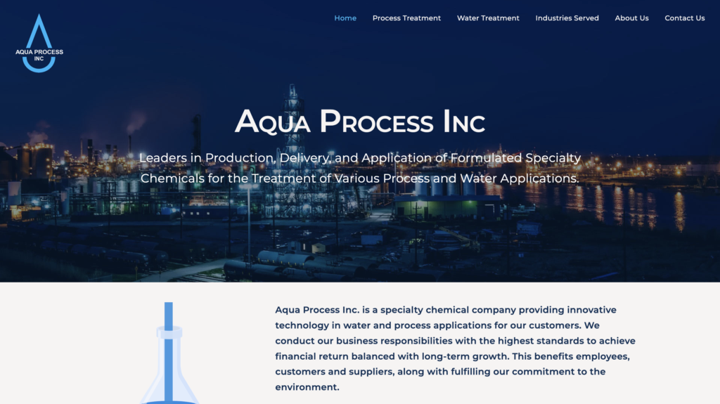 Aqua Process Inc. is a specialty chemical company providing innovative technology in water and process applications for our customers. We conduct our business responsibilities with the highest standards to achieve financial return balanced with long-term growth. This benefits employees, customers and suppliers, along with fulfilling our commitment to the environment.