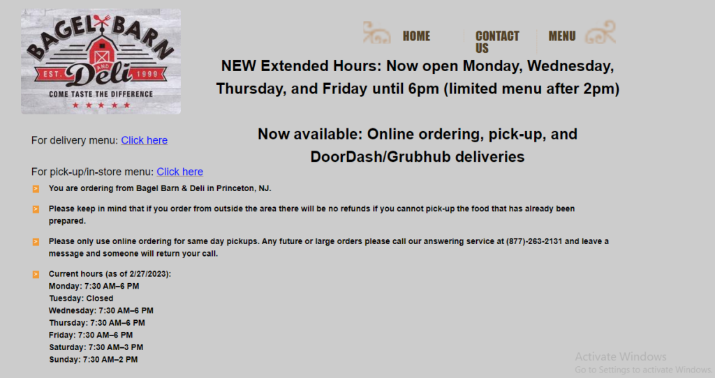Home » Listings » BAGEL BARN & DELI October 5, 2023 BAGEL BARN & DELI Other Now available: Online ordering, pick-up, and DoorDash/Grubhub deliveries​ Add to favourites Report abuse Contact details Please complete the captcha field below to view phone number and/or email address. http://bagelbarndeli.com WHOIS Created on: 08/18/2014, 13:38PM Last Updated on: 08/19/2024, 06:34AM Expires on: 08/18/2026, 13:38PM Registrant: Organization: Domains By Proxy, LLC State: Arizona Country: UNITED STATES Country Code: US Technical Contact: Organization: Domains By Proxy, LLC State: Arizona Country: UNITED STATES Country Code: US Domain Name: bagelbarndeli.com Name Servers: Host Names: NS53.DOMAINCONTROL.COM, NS54.DOMAINCONTROL.COM Audit: Created on: 04/29/2026, 11:22AM Last Updated on: 04/29/2026, 11:22AM Registrar: GoDaddy.com, LLC Registrar IANAID: 146 WHOIS Server: whois.godaddy.com Contact Email: abuse@godaddy.com