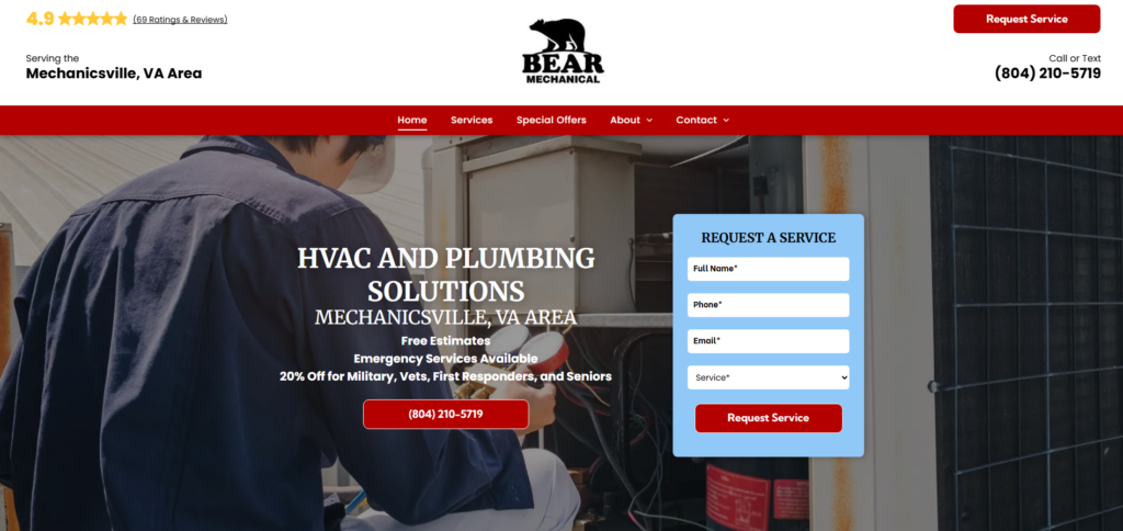 At Bear Mechanical, we pride ourselves on our personal approach to customer service. We’re not just another HVAC company; we’re your neighbors, dedicated to building lasting relationships within our community. Our comprehensive range of services, from routine maintenance to emergency repairs, is designed to keep your systems running smoothly and efficiently. We offer free estimates, competitive pricing, and special discounts for military personnel, veterans, first responders, and seniors. Whether you need a simple repair or a complete system overhaul, you can trust Bear Mechanical to deliver exceptional results. For all your heating, cooling, and plumbing requirements, contact us today and experience the Bear Mechanical difference.