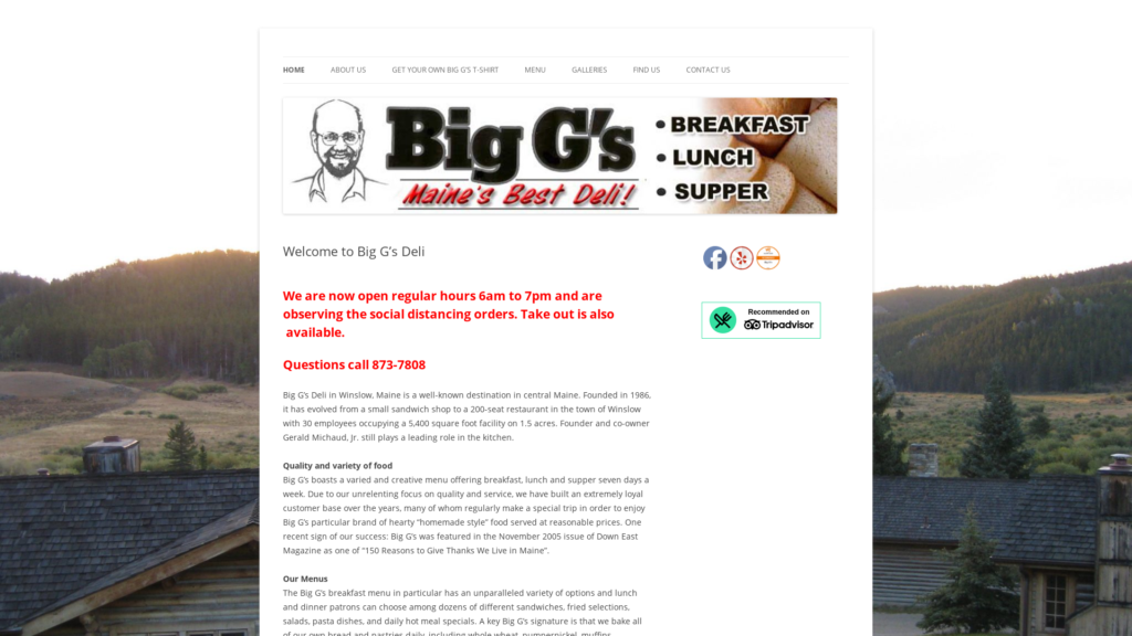 We searched the Winslow/Waterville area for several months and finally found the present home of Big G’s. The original building was tiny, containing only a handful of seats and a very small kitchen. In the spring of 1993 Albert Deserosier and his sons, Mike and Renny began the construction with an expansion of the kitchen and an addition, increasing the dinning room to three times its size. Since then, we have enlarged the size of our building four times, stretched our parking lot several times and added loads of new items to our menu.