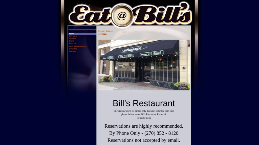 Home » Listings » BILL’S RESTAURANT January 11, 2020 BILL'S RESTAURANT Restaurants Eat @ Bill's Bill's Restaurant Owensboro, KY Add to favourites Report abuse Contact details Please complete the captcha field below to view phone number and/or email address. http://atbills.com WHOIS Domain Name: atbills.com Audit: Created on: 07/29/2025, 08:25AM Last Updated on: 07/29/2025, 08:25AM Registrar: GoDaddy.com, LLC Registrar IANAID: 146 Contact Email: abuse@godaddy.com