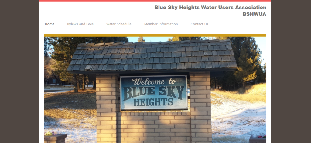 BlueSky heights Water Users Association was created to manage and deliver water to the residents of the Blue Sky Heights subdivision, located in Jefferson County, Montana. The goal of the Blue Sky Heights Water Users Association, and its board members, is to work with the residents of this beautiful subdivision to supply and maintain clean and healthy water for all the residents that call it home.