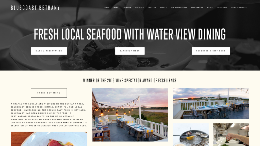 Bluecoast seafood grill in bethany beach is considered the best seafood restaurant in Delaware. Overlooking the beautiful salt pond, with great water views from the dining room and the back deck, bluecoast serves fresh fish, including tuna, rockfish in season, salmon, halibut, mahi mahi, and seafood favorites like shrimp, crab, scallops and clams, but always has a steak on the menu. Bluecoast has an extensive award winning wine list, and a list of craft cocktails to please everyone. For the best restaurant in bethany beach, come check out bluecoast bethany seafood grill and raw bar.