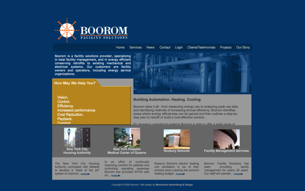 Building Automation. Heating. Cooling. Boorom does it all – from measuring energy use to analyzing peak use data and identifying methods of increasing annual efficiency. Boorom identifies areas where energy efficiencies can be gained and then outlines a step-by-step plan to retrofit or build a cost-effective solution.
