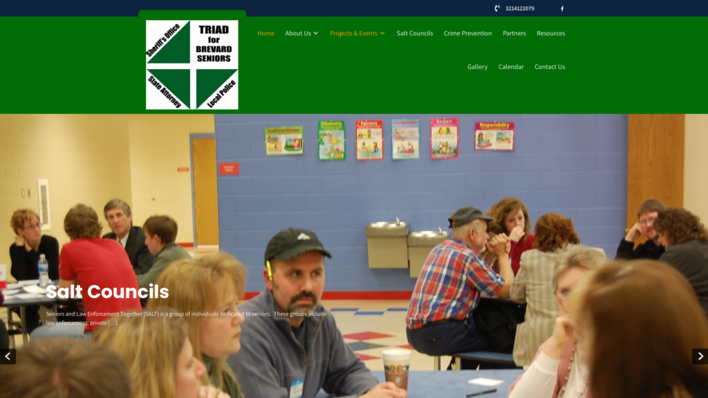 Brevard County TRIAD, Inc. is a 501(c)(3) non-profit organization. TRIAD and its many organizations and business partners work together to develop programs that address the issues of our growing senior population, as identified at the regional SALT Council meetings. The local Brevard County TRIAD, Inc. is a partnership agreement between the Brevard County Sheriff’s Office, local Law Enforcement agencies, and the State Attorney’s Office. Nationally, TRIAD comprises the AARP, the National Sheriff’s Association, and the International Association of Chiefs of Police.