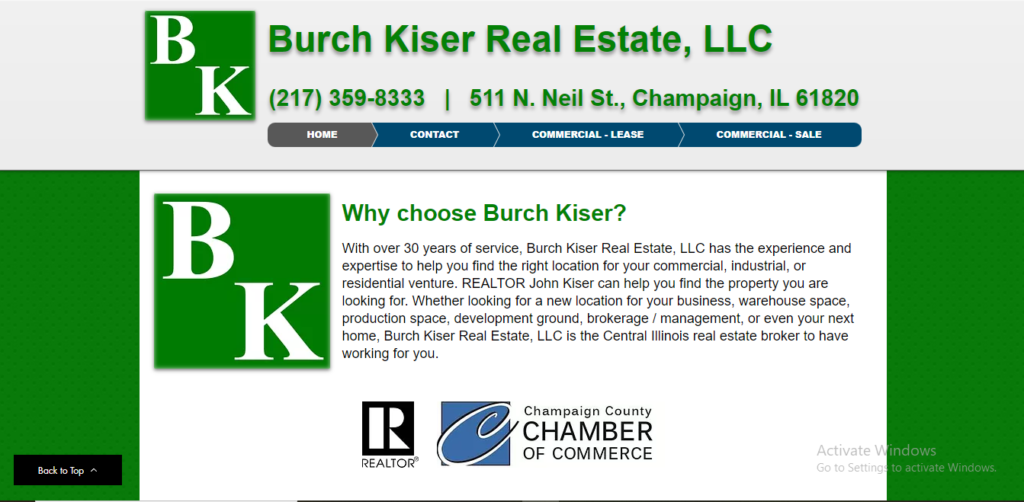 With over 30 years of service, Burch Kiser Real Estate, LLC has the experience and expertise to help you find the right location for your commercial, industrial, or residential venture. REALTOR John Kiser can help you find the property you are looking for. Whether looking for a new location for your business, warehouse space, production space, development ground, brokerage/management, or even your next home, Burch Kiser Real Estate, LLC is the Central Illinois real estate broker to have working for you.