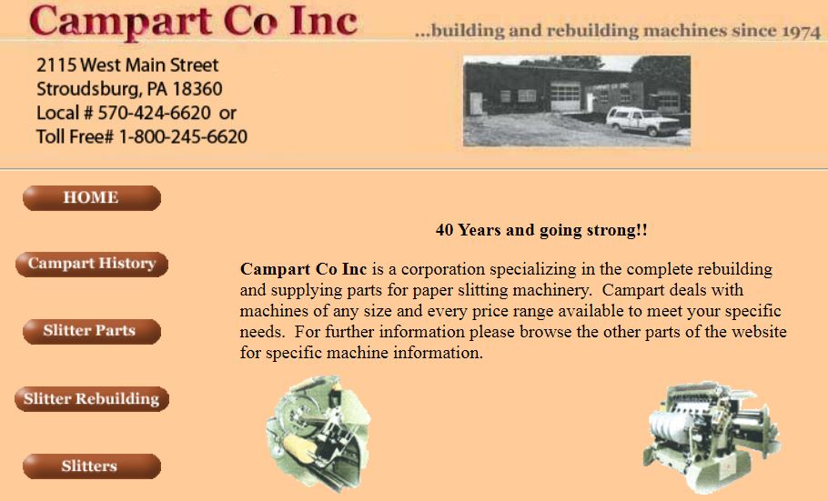 Campart Co Inc is a corporation specializing in the complete rebuilding and supplying parts for paper slitting machinery. Campart deals with machines of any size and every price range available to meet your specific needs. For further information please browse the other parts of the website for specific machine information.