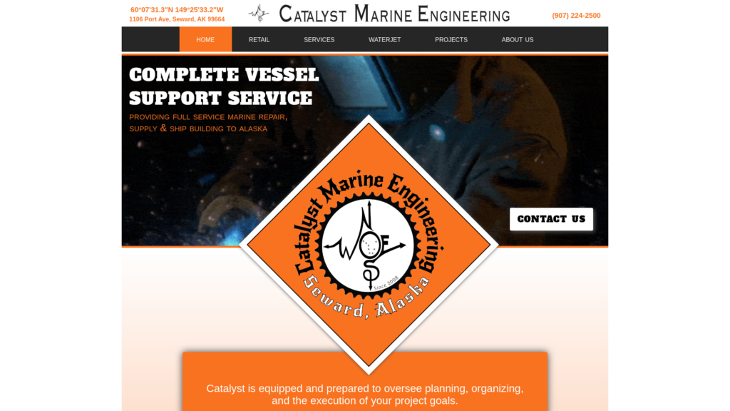 Catalyst Marine Engineering - Downtime for any vessel is costly CME can make your next project a success in a timely and efficient manner. Offshore, dock side or land based, Catalyst is equipped and prepared to oversee planning, organizing, and the execution of your project goals. CME is a complete vessel support service actively setting the standard and meeting the needs of the marine industry throughout the state of Alaska.