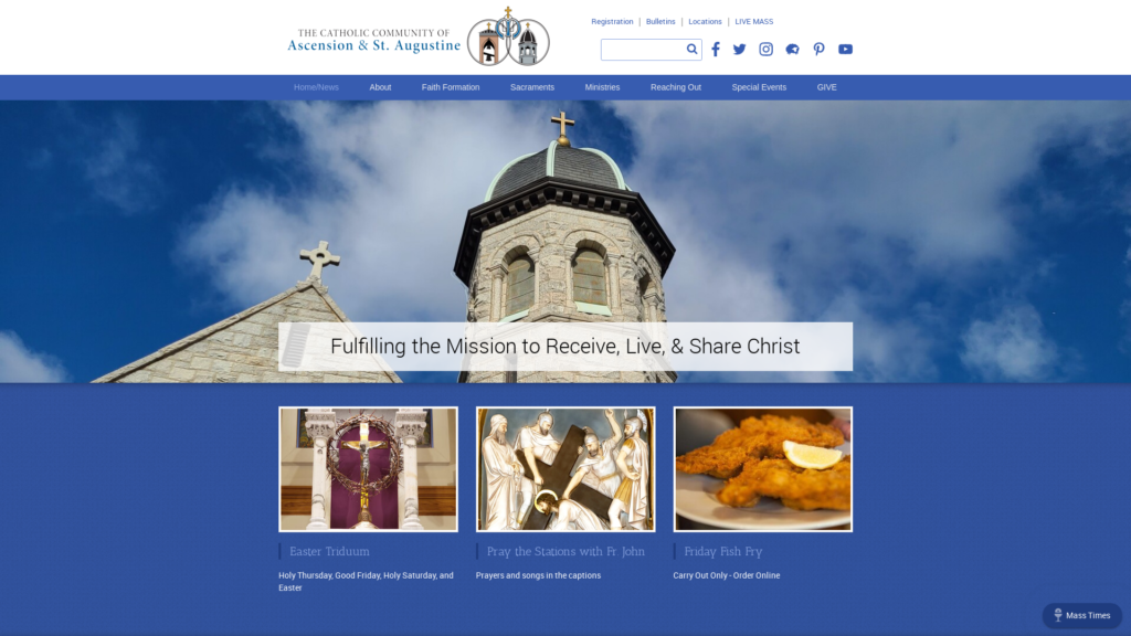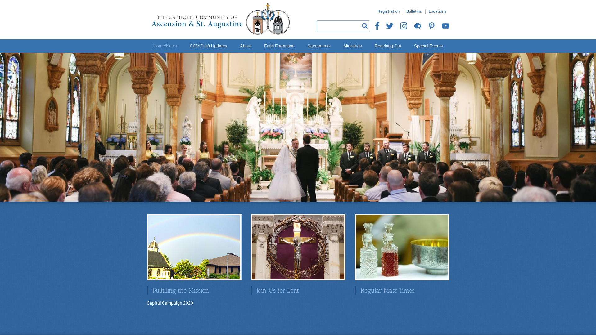 Welcome! The Catholic Community of Ascension and St Augustine is one vibrant parish on two active campuses. As a flourishing mission-driven community, we seek to help one another grow and strengthen our relationship with Christ and with each other. Join us!