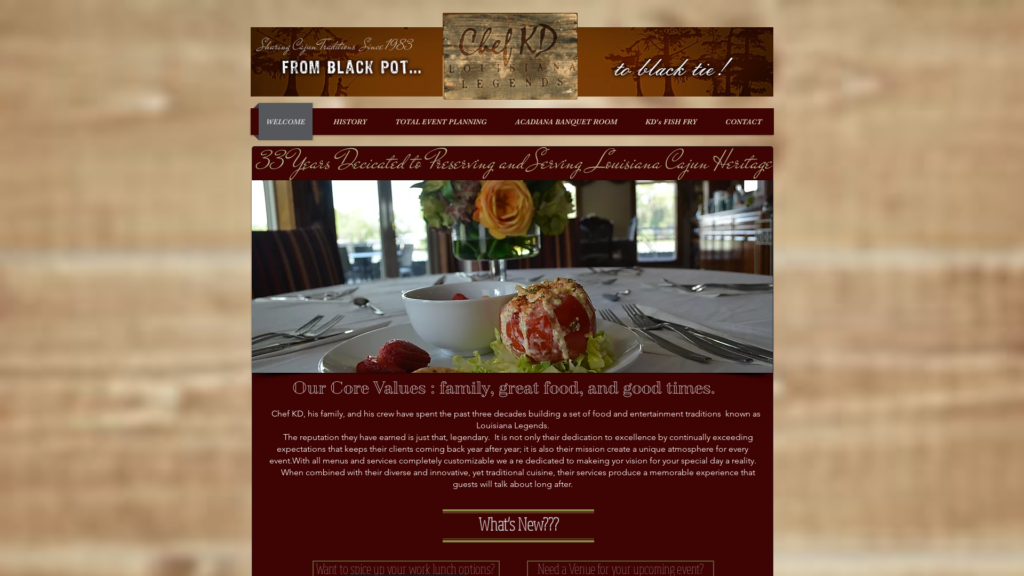 Since 1983, local legend Chef KD and his extrodianary staff have delivered a classic louisiana "joie de vivre" atmospere while catering exceptional events.