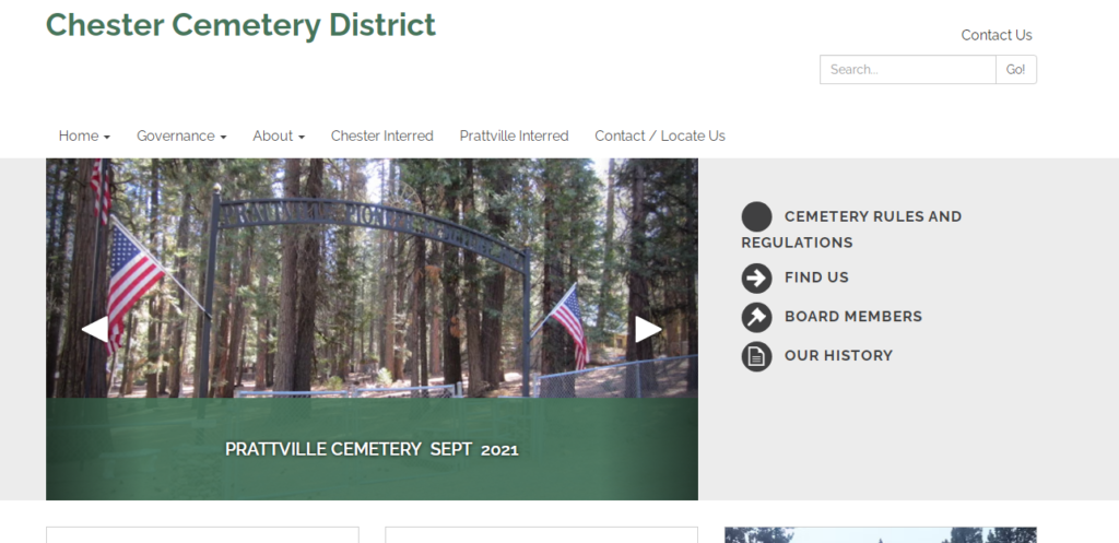 Chester Cemetery District serves the communities of Chester and Prattville.