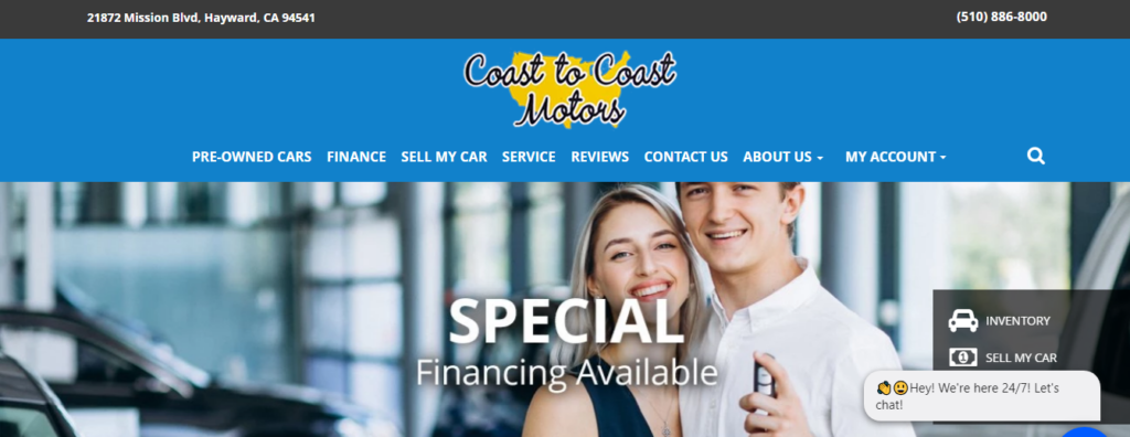 At Coast to Coast Motors the customer always comes first. We are an established dealership with years of experience in the automotive industry. Through great customer service and true pricing, we have earned the trust and respect of Hayward and the surrounding Alameda County communities.