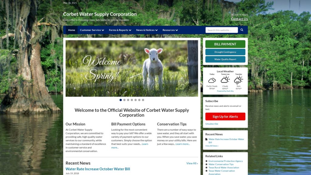 Welcome to the Official Website of Corbet Water Supply Corporation in Corsicana, TX!