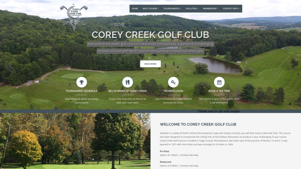 Nestled in a valley of north central Pennsylvania's Lake and Canyon Country, Corey Creek Golf Club is the perfect setting for a round of golf in Mansfield, PA.