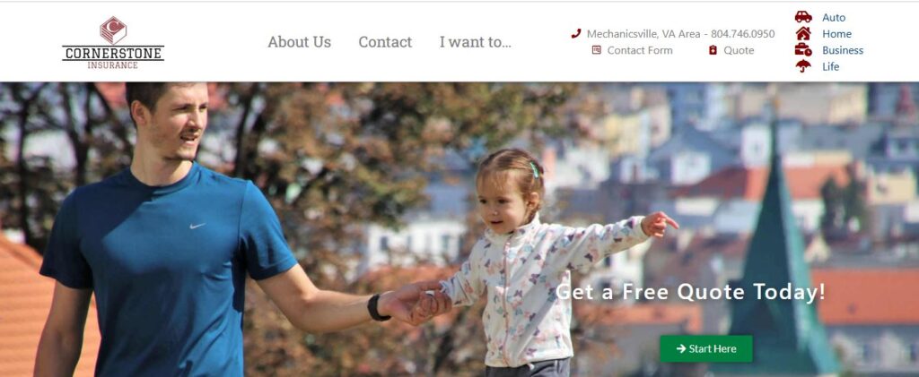 At Cornerstone Insurance Agency, Inc. we strive to provide the best coverage possible. Since we are an Independent Insurance Agent, we have resources at our disposal that does not lock you into only one company. We search out the best companies that will meet your personal needs. Contact us today and talk to one of our agents at 804-746-0950 or fill out our Contact page. For a personal quote, go to our Quote page.