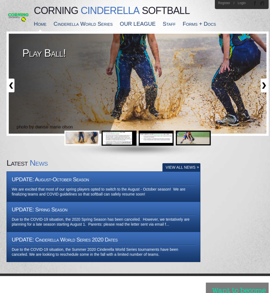 The Corning Cinderella Softball League, Inc. provides a safe and friendly atmosphere where girls can learn the fundamentals of fast pitch softball. We promote the development of a girls athletic ability, teach team work and sportmanship, and most of all let the girls have fun! Simply, it’s all about the girls!