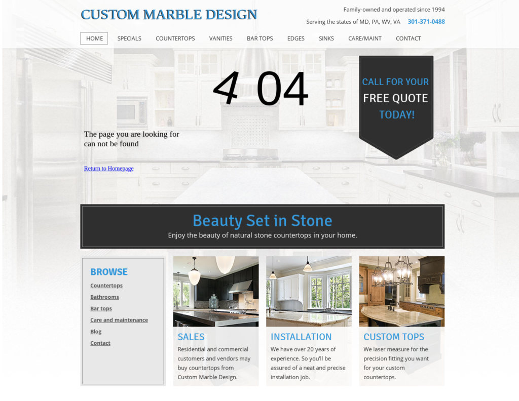 Residential and commercial customers and vendors may buy countertops from Custom Marble Design.