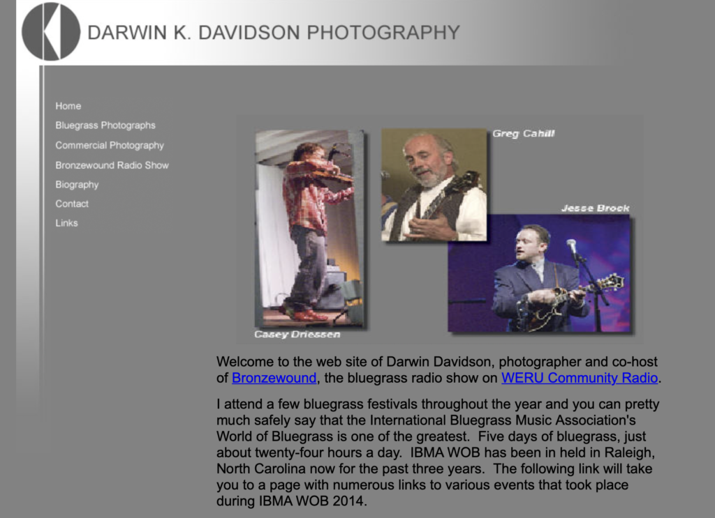 Welcome to the web site of Darwin Davidson, photographer and co-host of Bronzewound, the bluegrass radio show on WERU Community Radio.