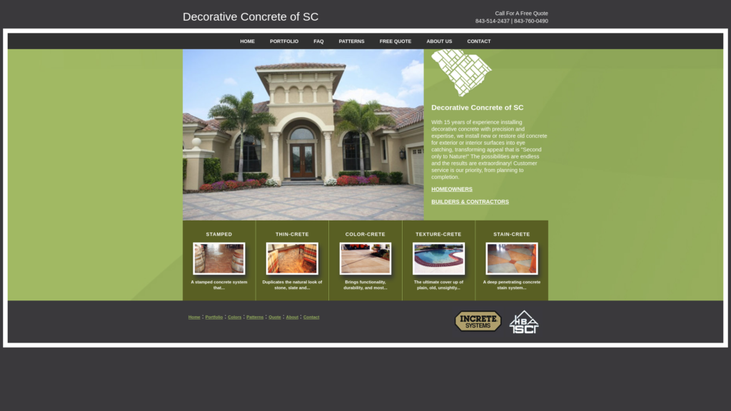 13 years later, his instincts have been proven correct. Decorative concrete of SC is now one of the city’s most well-respected concrete design firms. The company handles both residential and commercial projects, from walkways, sidewalks and driveways, to pool decks, patio and garden paths.