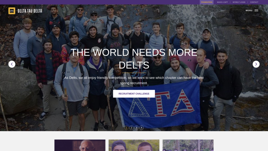 Delta Tau Delta is the place for leaders to hone their skills, youths to grow, students to find support and guidance, and men to find their paths to a life of excellence. With more than 150 years of guiding men via Truth, Courage, Faith, and Power, the Delta Tau Delta experience has fostered innovators, advocates, change agents and community leaders by affecting the world through self-discovery. Where will your journey lead you?