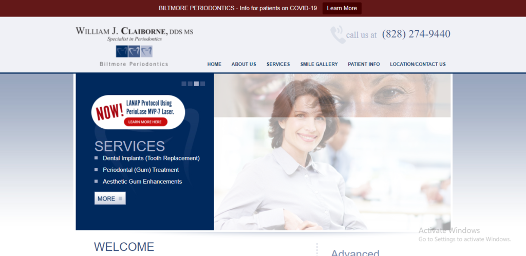In addition to his exceptional skills in treating periodontal disease of all stages, Dr. Claiborne provides the services of dental implant placement, cosmetic periodontal enhancement (including functional and esthetic crown lengthening), periodontal surgery, gum and bone grafting and oral biopsies.