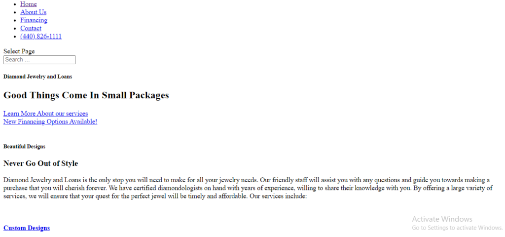 Diamond Jewelry and Loans is the only stop you will need to make for all your jewelry needs. Our friendly staff will assist you with any questions and guide you towards making a purchase that you will cherish forever. We have certified diamondologists on hand with years of experience, willing to share their knowledge with you. By offering a large variety of services, we will ensure that your quest for the perfect jewel will be timely and affordable. Our services include:
