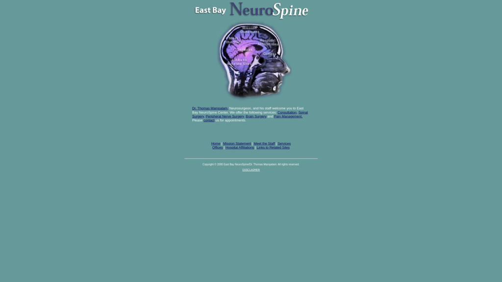 Dr. Thomas Mampalam welcomes you to East Bay Neurospine Center. We offer the following services: Consultation, Brain, Spinal and Nerve Surgery, and Pain Management