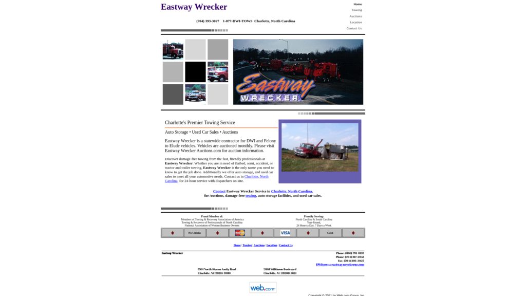 Eastway Wrecker is a statewide contractor for DWI and Felony to Elude vehicles. Vehicles are auctioned monthly. Please visit Eastway Wrecker Auctions.com for auction information.