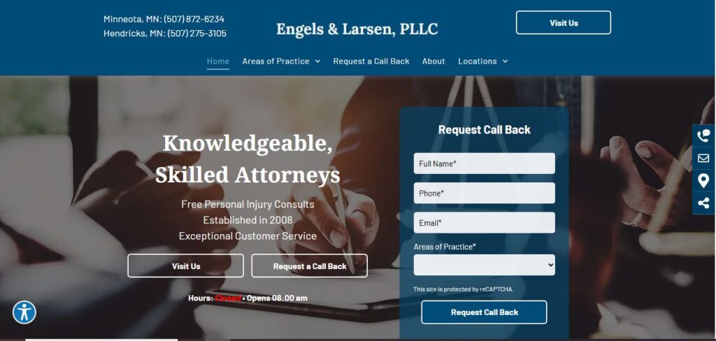 Engels & Larsen, PLLC provides estate planning, business formation, real estate, veteran benefits and personal injury law services to the Minneota and Hendricks, MN areas.