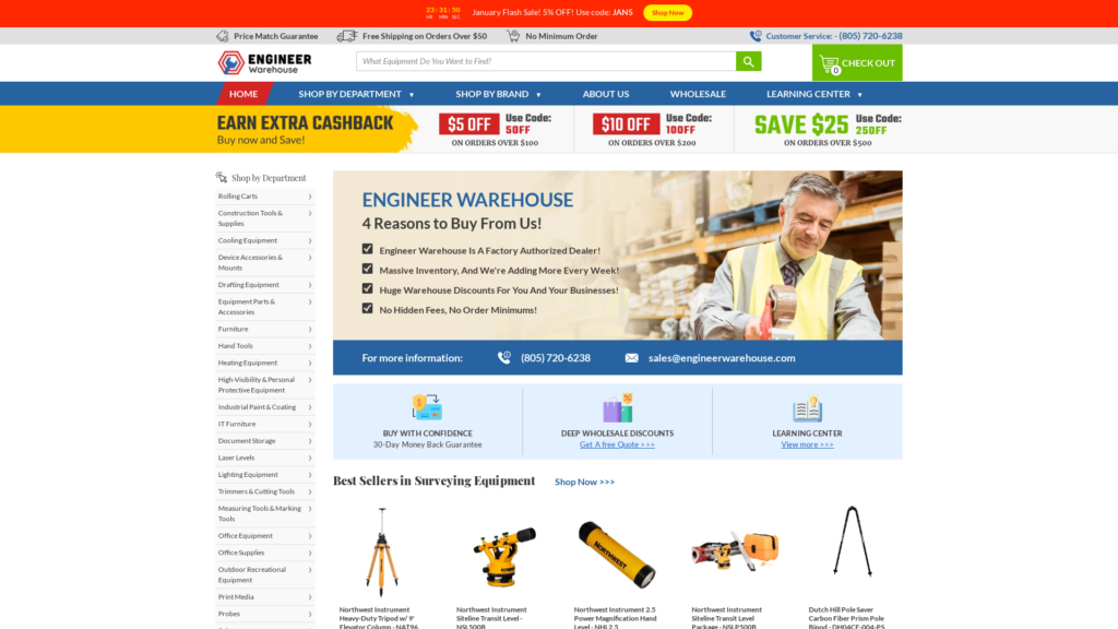 Engineer Warehouse is a leading distributor of top-quality engineering equipment, land surveying instruments, drafting tools, furniture, hand tools, and many more.