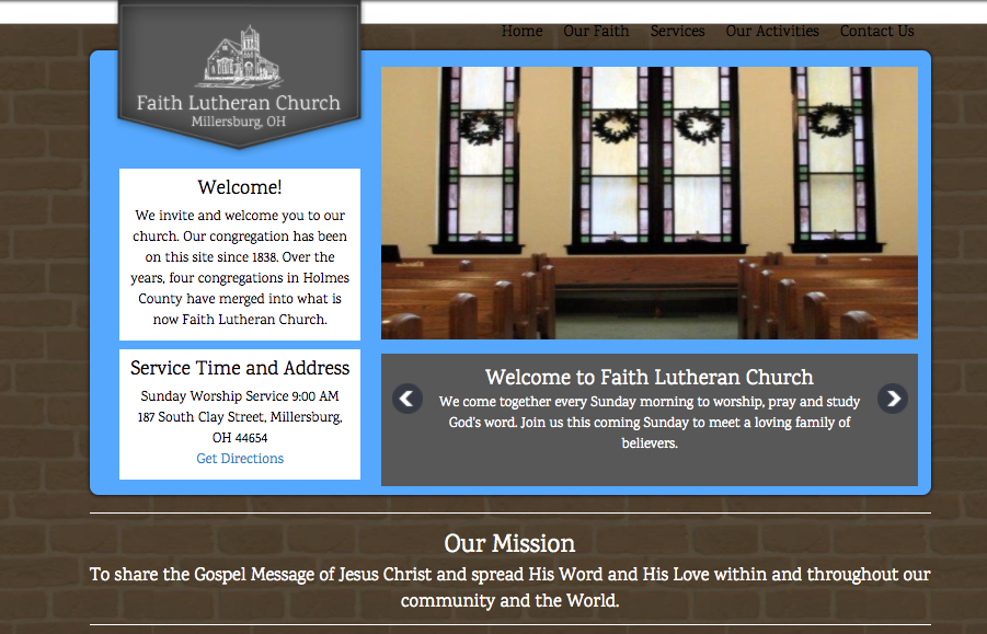 We invite and welcome you to our church. Our congregation has been on this site since 1838. Over the years, four congregations in Holmes County have merged into what is now Faith Lutheran Church.
