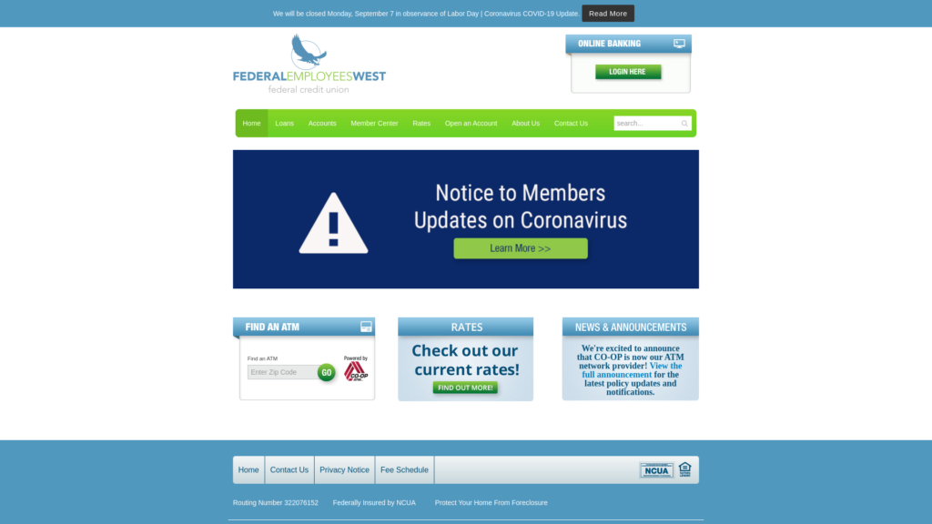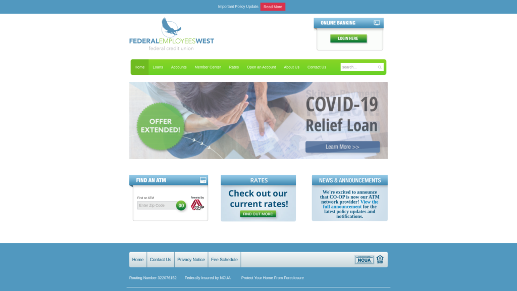 Federal Employees West Federal Credit Union is a full-service financial institution, serving its members since 1958. For people, not profit, serving the interests of our member-owners.