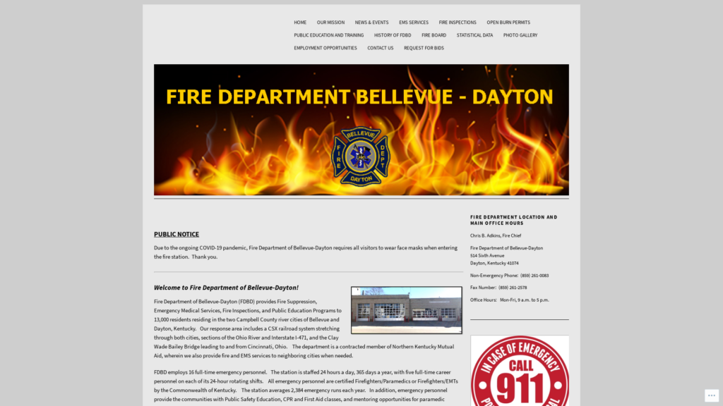 PUBLIC NOTICE Due to the ongoing COVID-19 pandemic, Fire Department of Bellevue-Dayton requires all visitors to wear face masks when entering the fire station.  Thank you. Welcome to Fire Department of Bellevue-Dayton! Fire Department of Bellevue-Dayton (FDBD) provides Fire Suppression, Emergency Medical Services, Fire Inspections, and Public Education Programs to 13,000 residents residing in the…
