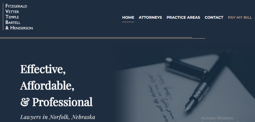 Fitzgerald, Vetter, Temple, Bartell, & Henderson are attorneys located in Norfolk, Nebraska, the hub for Northeast Nebraska. Through years of hard work and client focused advocacy, our law firm has built a strong regional reputation for being tough and skillful trial lawyers. We are a full-service law firm, committed to providing our clients with effective, affordable, and professional legal representation. We have top-rated litigation lawyers that are here to represent you and your legal needs.