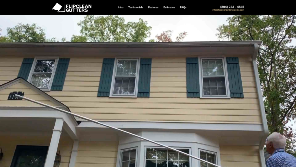 The patented FlipClean Gutter System is the only rainwater carrier that allows you to clean your gutters quickly and easily from the safety of the ground. It only takes five minutes! Mounted on sturdy aluminum hinge-brackets, our gutters “flip” upside-down and let gravity do the work. Our gutter-flipping poles reach up to three stories high, so there is no need for you to ever risk injury on a roof orladder. Our aluminum drip-edge supports your shingles from underneath, preventing drooping and cracking that can cause water to run behind the gutters and interfere with flipping. We put the power in your hands by offering a cleaning system so easy that anyone can do it. Our gutters are not covered. You can see inside them and know they’re clean. It’s easy, safe and durable. It’s the smart thing to do!