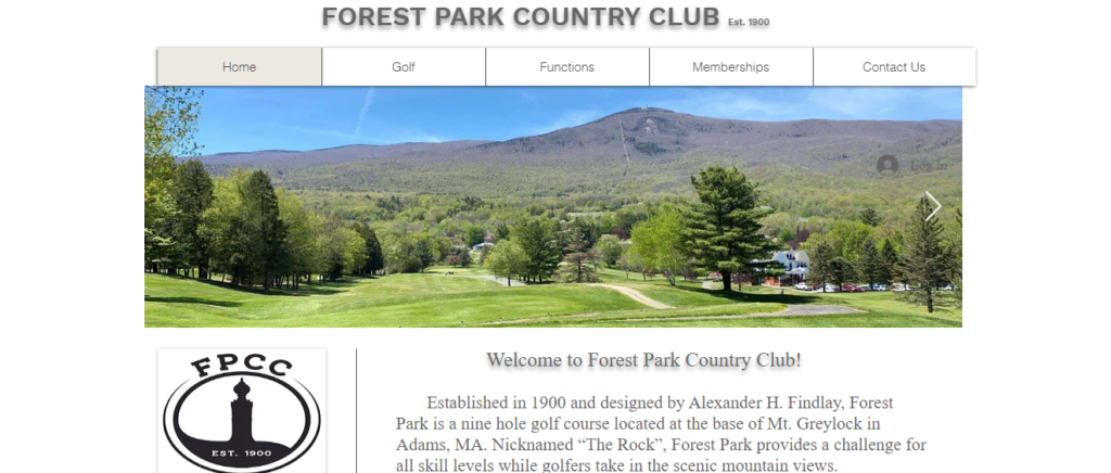 Established in 1900 and designed by Alexander H. Findlay, Forest Park is a nine hole golf course located at the base of Mt. Greylock in Adams, MA. Nicknamed “The Rock”, Forest Park provides a challenge for all skill levels while golfers take in the scenic mountain views.