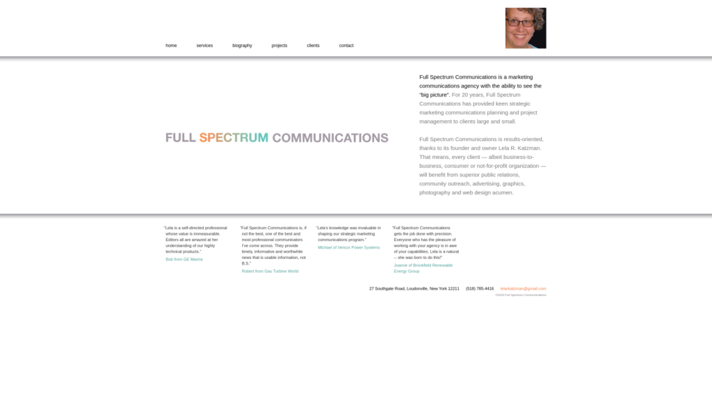 Full Spectrum Communications is a full service public relations and marketing communications agency. The firm's President Lela R. Katzman has a reputation for personalized service who is comfortable tackling pr efforts for industrial and high-tech clients throughout the world.