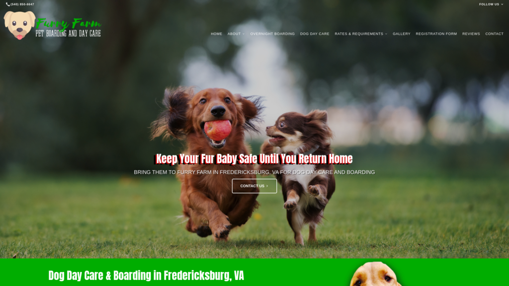 Contact Furry Farm Pet Boarding and Day Care to learn about our dog day care and overnight pet boarding services in Fredericksburg, VA. Call today!