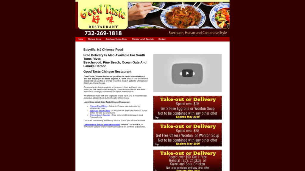 Good Taste Chinese Restaurant provides the best Chinese take-out and free delivery in the entire Bayville, NJ area. We use only the freshest ingredients we can find to provide you with a meal of authentic Chinese and Szechuan, Hunan flavors.