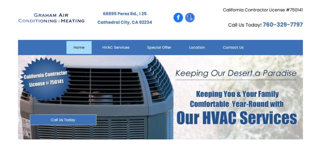 Graham Ricker Air Conditioning & Heating is a small, family-owned-and-operated company in Cathedral City, CA, that has served customers’ needs since 1988. Our HVAC contractor specializes in installing and repairing air conditioning and heating systems. We pride ourselves on providing honest service and fair pricing.