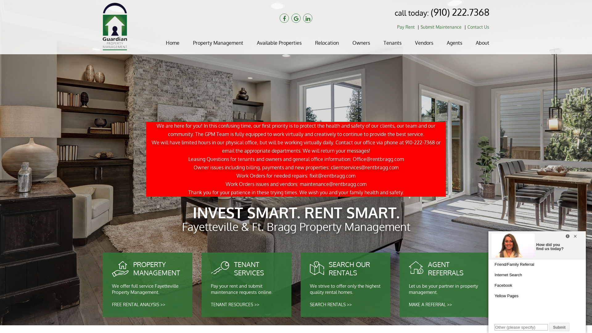 Guardian Property Management specializes in quality, reliable property management of the residential rental property in the Fayetteville / Fort Bragg area. Our mission is simple: To protect your investment property and provide superior service. GPM specializes in military relocation and understands the unique needs of military owners and tenants.