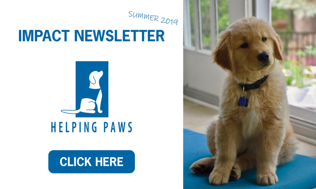 Helping Paws dogs are at work in the community and more are training to join them. What does this mean in daily lives? It means veterans who can sleep through the night or drive children to school with less distress. It means countless keys and phones retrieved, gloves removed, doors opened and lights turned on for those who cannot accomplish such tasks alone.