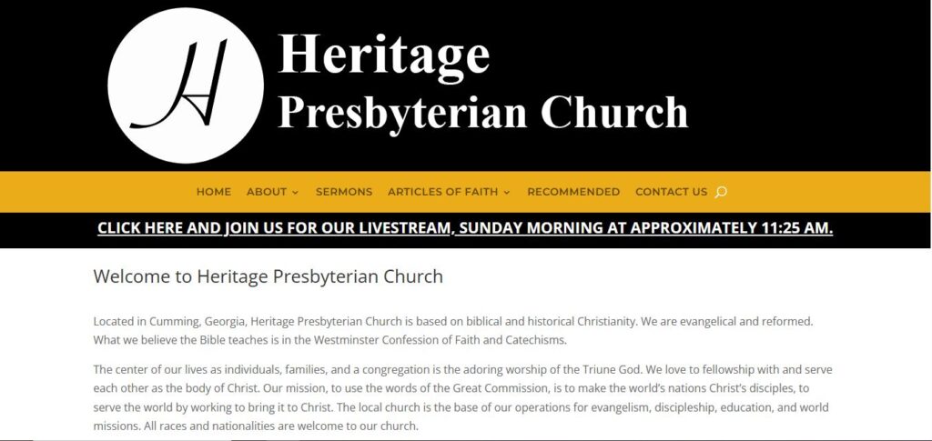 Located in Cumming, Georgia, Heritage Presbyterian Church is based on biblical and historical Christianity. We are evangelical and reformed. What we believe the Bible teaches is in the Westminster Confession of Faith and Catechisms.